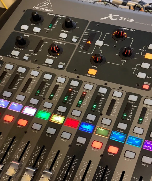 Desde FOH até monitoria e IEM (in-ear monitoring). Nossa equipe entrega mixes limpos, apoio ao ministério de louvor e resolução pró-ativa de problemas.